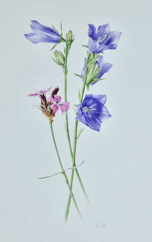 Dianthus carthusianorum et campanula persicifolia (oeillet des chartreux et campanule de Perse)