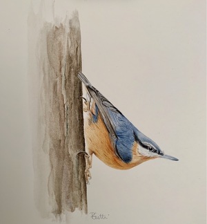 Ma vie professionelle, de mère, d’épouse ont été pendant des années mes priorités, laissant les activités artistiques en sommeil. J’ai commencé le dessin humblement, de temps en temps, sans régularité. Puis, il y a plus de 25 ans maintenant j’ai découvert la peinture sur porcelaine. J’ai aimé et pratiqué celle-ci une dizaine d’années. Sur ce support blanc, mes sujets de prédilection étaient déjà la nature et les oiseaux, ainsi que les thèmes plus modernes mais d’une grande finesse à la plume. Les médiums, le matériel difficile à transporter et les cuissons successives nécessaires m’ont poussée à chercher un support similaire mais plus pratique. la blancheur et la transparence recherchées m’ont menée vers l’aquarelle comme nouvelle méthode d’expression. J’étais infirmière dans des services hospitaliers difficiles psychologiquement et la nature était pour moi un hymne à la vie. Ces années d’appprentissage et de pratique m’ont permis de rencontrer de grands artistes, autant en peinture sur porelaine, qu’en aquarelle.