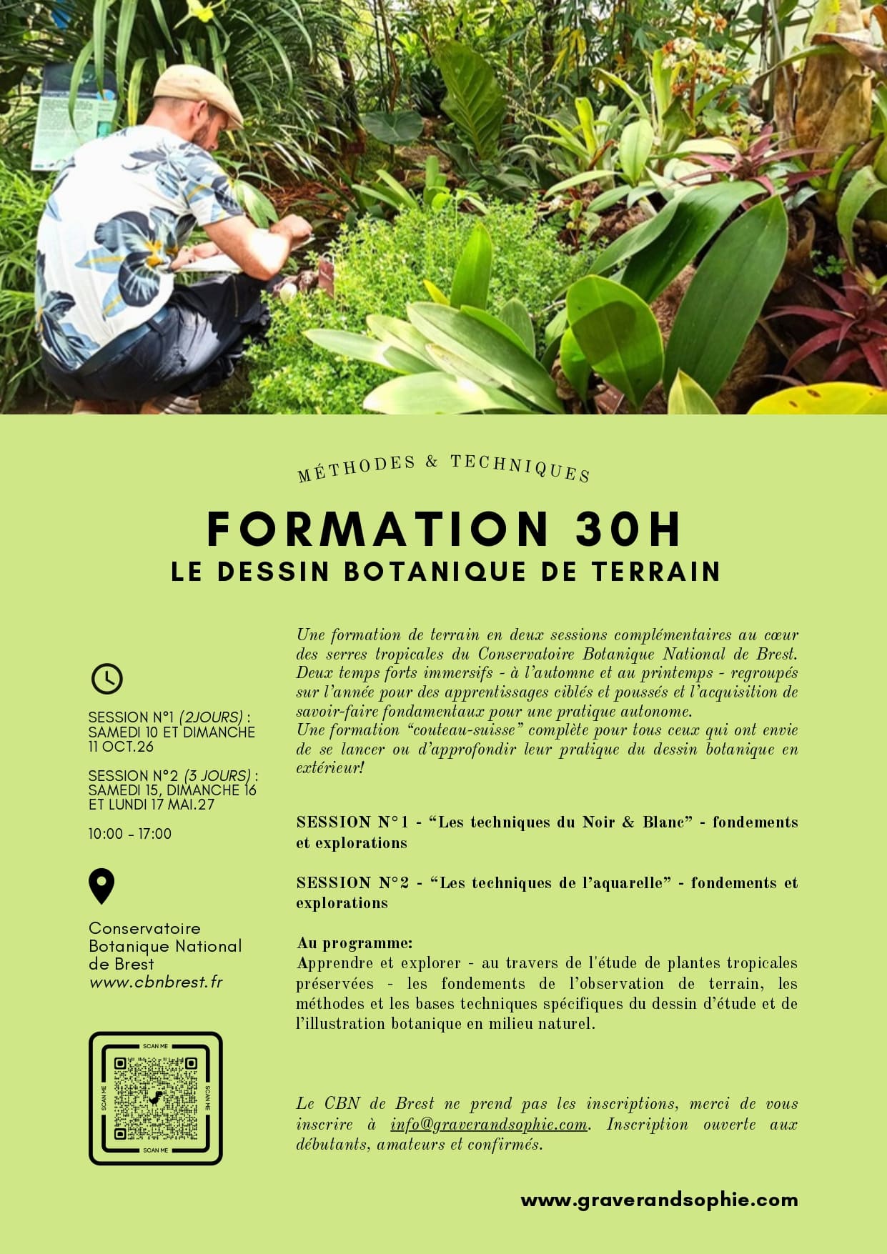 5 jours immersifs dans le cadre exceptionnel du Conservatoire Botanique National de Brest, entre atelier-laboratoire, serres tropicales et jardin botanique pour aller plus loin dans sa pratique.